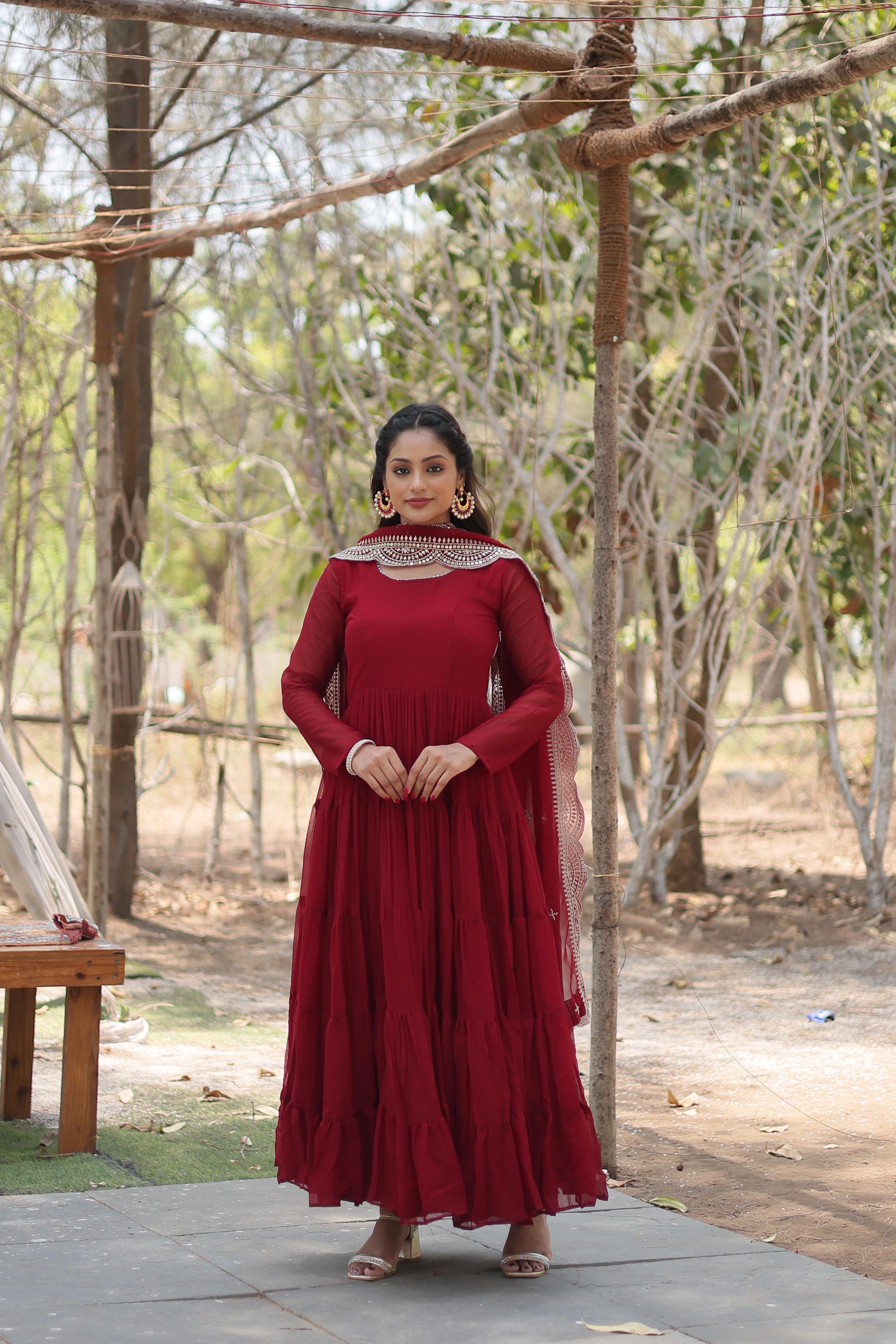 Gown Details: ✔ Fabric: Faux Blooming Georgette with Attractive Embroidered Work ✔ Sizes Available: M (38"), L (40"), XL (42"), XXL (44") ✔ Length: 56 inches for a royal...