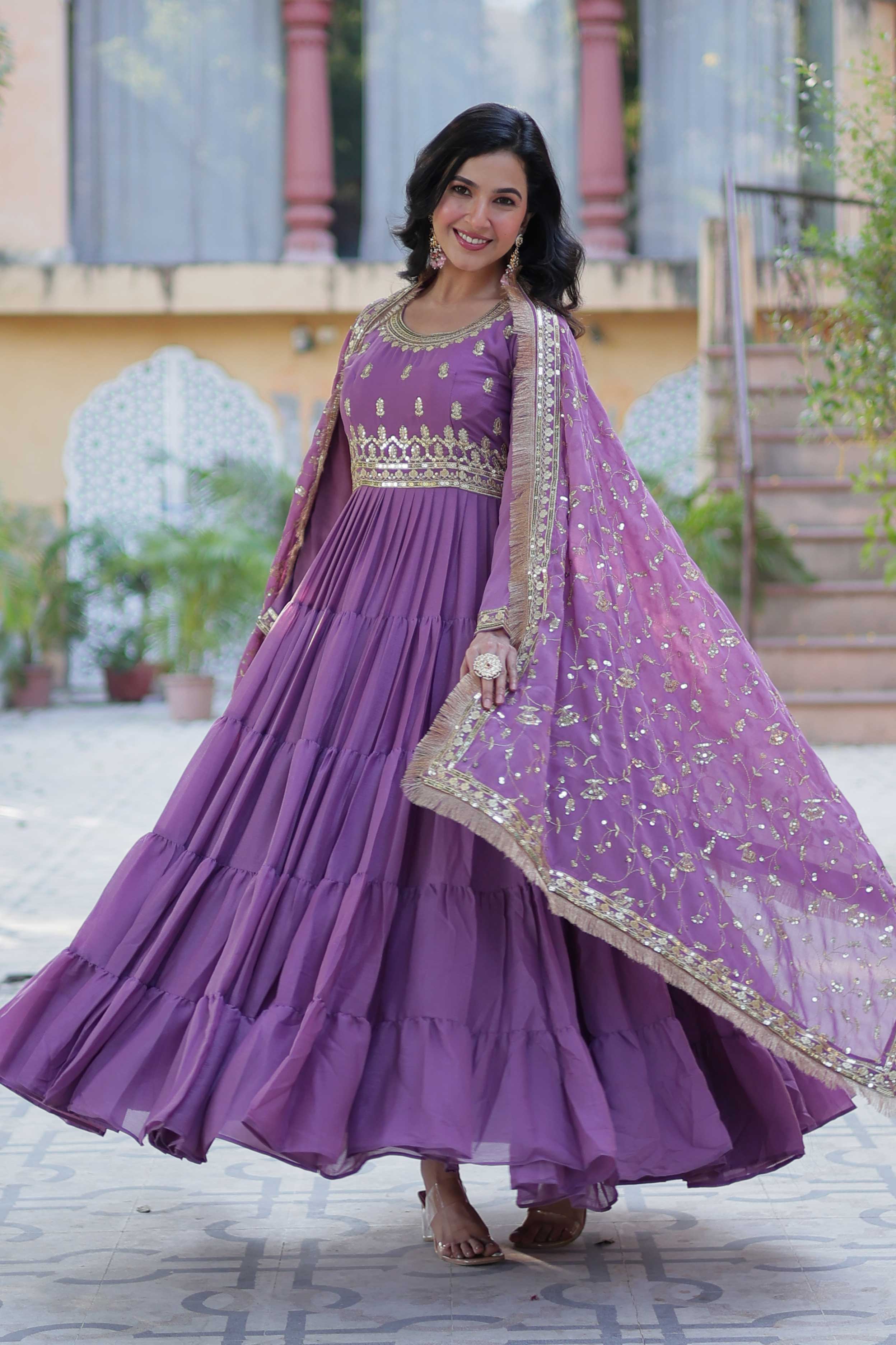 Gown Details: ✔ Fabric: Faux Blooming Georgette with Sequin Embroidery ✔ Sizes: M (38"), L (40"), XL (42"), XXL (44") ✔ Length: 56 inches ✔ Flair:...